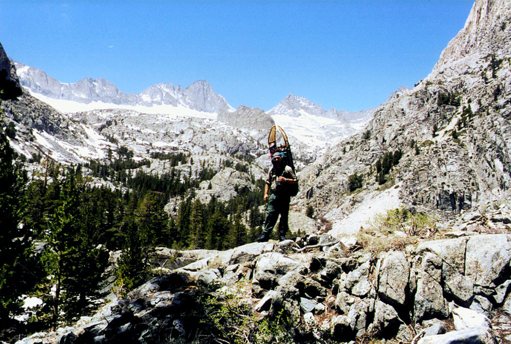 | 1995 Notes: Mt Sill 14,153' (6th highest in California) Memorial Day Weekend 1995 Friday 7.5 hrs Glacier Lodge to Second Lake ~10,200' Saturday 9.5 hrs Second Lake to High Camp overlooking the glacier near the side of Mt Gayley ~12,400' Sunday 6.5 hrs Summit attempt turned back at ~13,800' (ice and snow on rock) reached point even with Apex Peak Monday 5.5 hrs High Camp to Glacier Lodge ~8,000' |