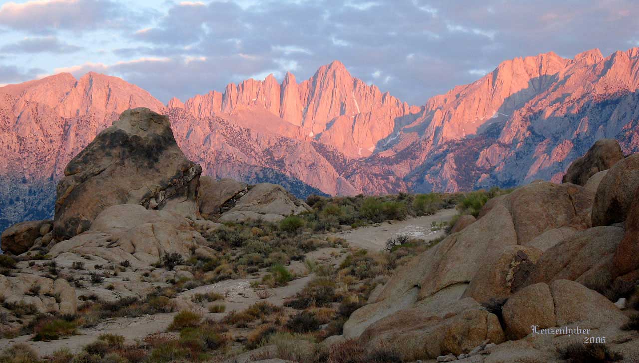 Lone Pine Peak, Mount Whitney and Mt Russell from near the Lone Pine Golf Course
